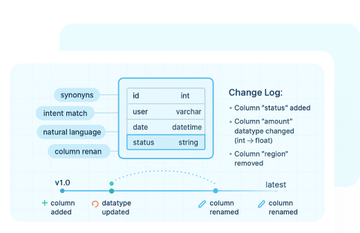 Track every schema change automatically, including added or removed columns, datatype changes, and version history. Stay audit-ready and never lose context on your datasets.
