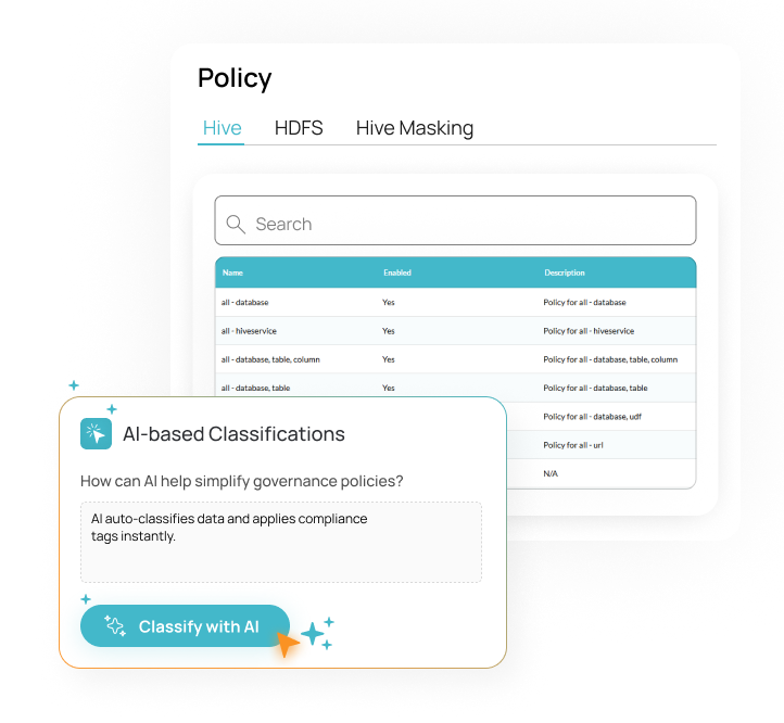 Use classification metadata to automate access and masking policies that help enforce compliance with GDPR, HIPAA, and other regulatory mandates.